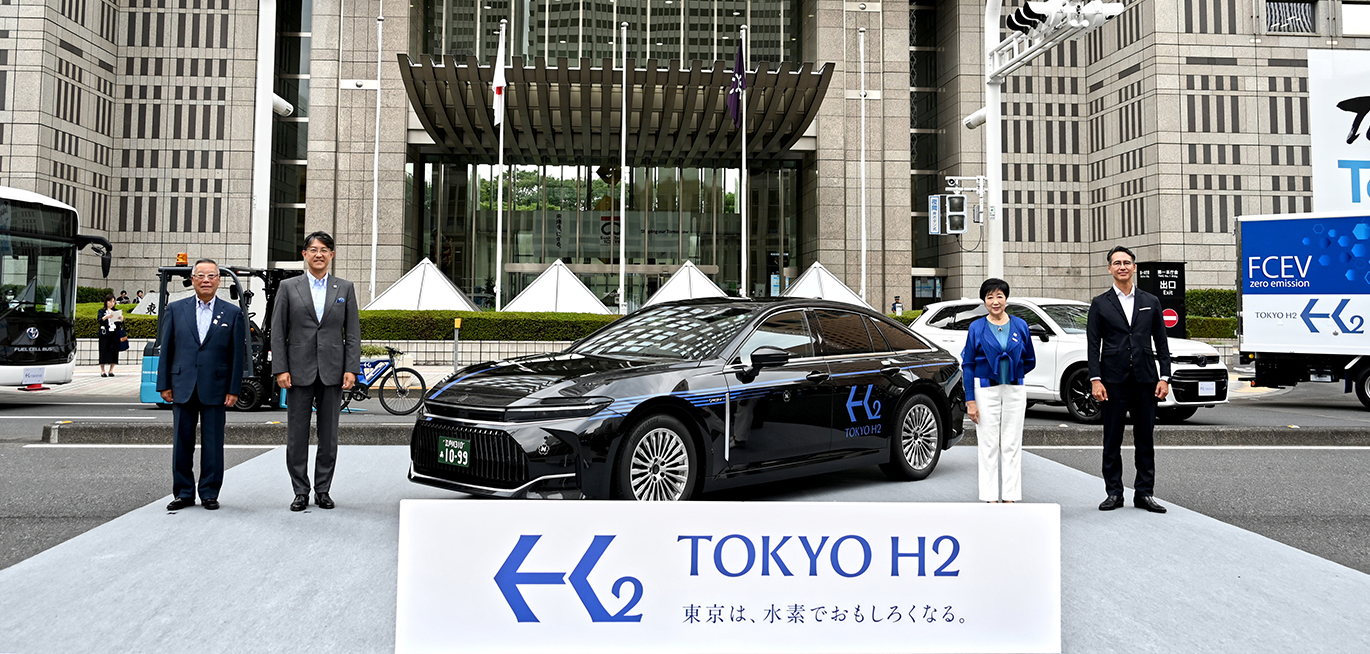 東京都は、全国初の燃料電池(FC)タクシーの都内への大量導入の開始に併せ、「水素を使う」アクションを加速させる官民連携プロジェクト「TOKYO H2」を令和7年9月に新たに始動させました。